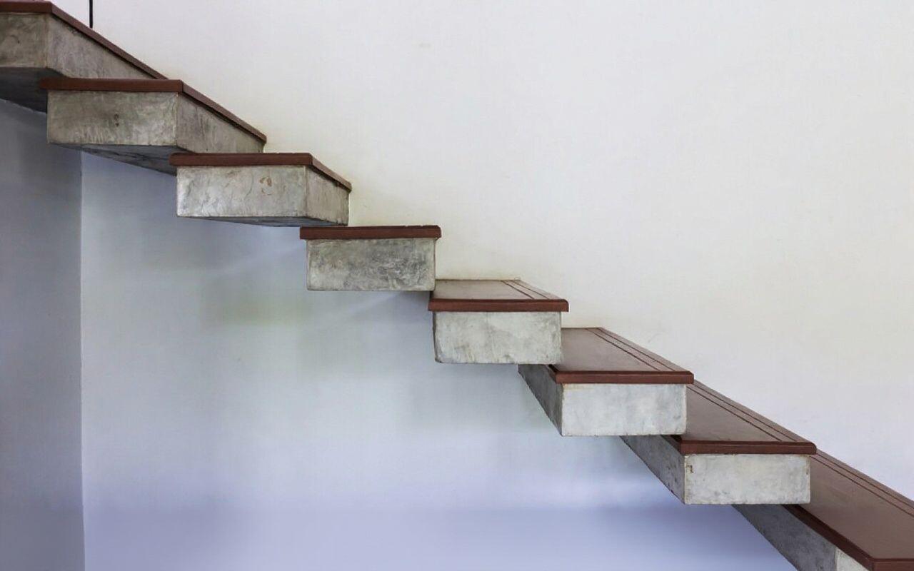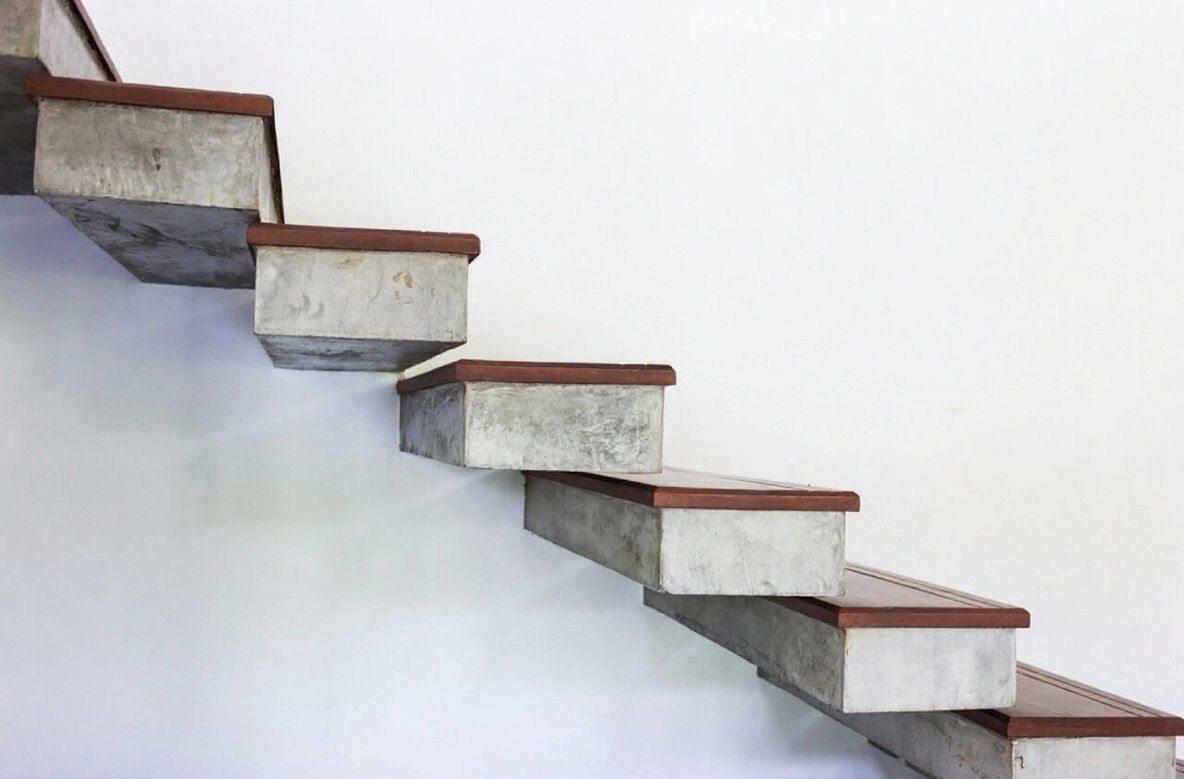Консольная лестница из бетона: брутальный характер и тепло натурального дуба